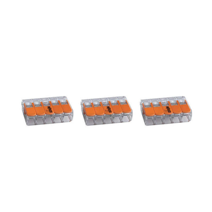 - 221-415, 5-Conductor splicing connectors, transparent housing, orange lever